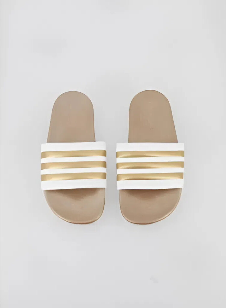 🔥 Offre spéciale : Claquettes Adilette Comfort Doré Blanc – Adidas Femme